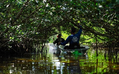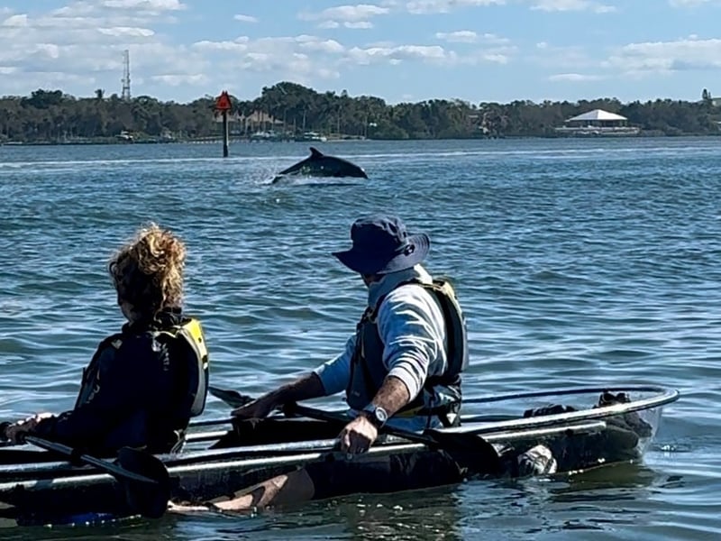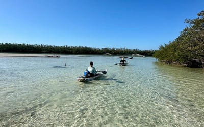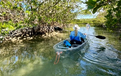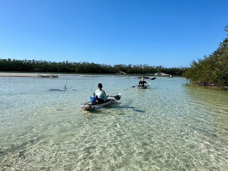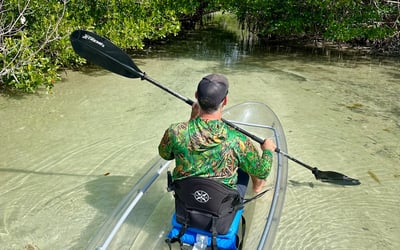 Glide in clear kayaks through mangroves with a naturalist guide to view seagrass and wildlife