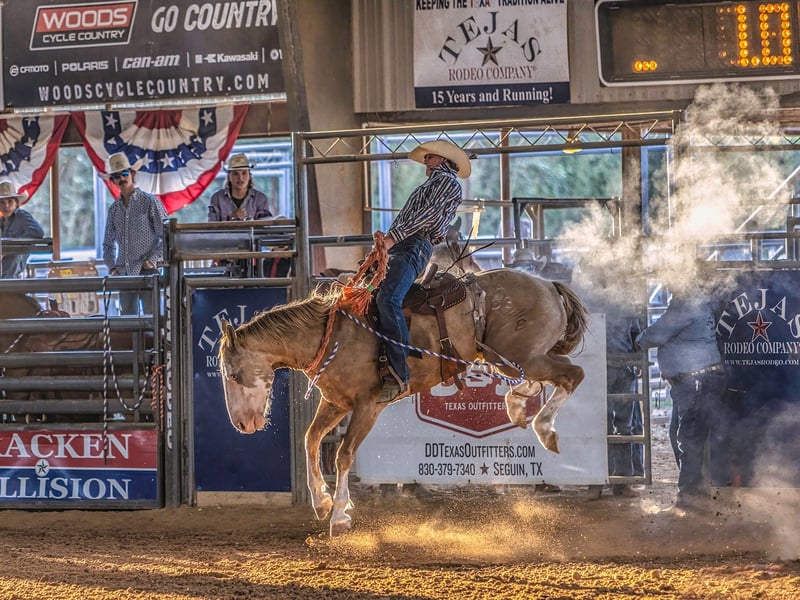 Spend Saturday night at Tejas Rodeo with an action-packed pro rodeo, then stay for live music and dancing. Explore concessions, vendors, and family-friendly fun across the grounds.
