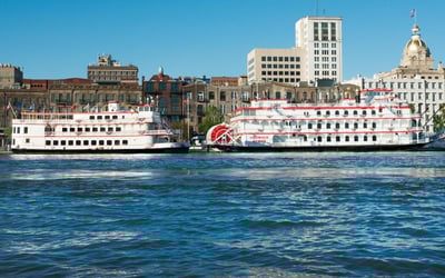 See historic Savannah by trolley and riverboat with live commentary and skyline views