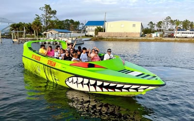 Ride into St. Andrews Bay on a 60-minute high-speed adventure with sunset views and a chance to see dolphins. Experience slides, dives, and splashes aboard the 30-foot Scream Machine powered by twin turbo diesel engines.