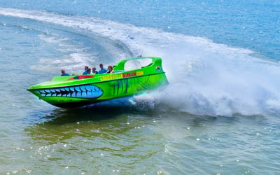 Ride a twin-engine jet boat for 60 minutes of heart-pounding spins, dives, and slides. Expect a soaking and a chance to spot dolphins.