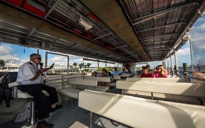 Spot alligators, manatees, and dolphins on a 2–2.5 hour pontoon ecology cruise along the scenic Sebastian River.