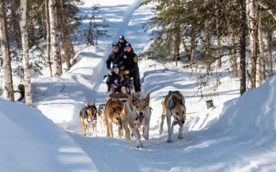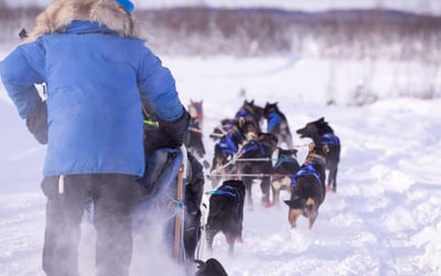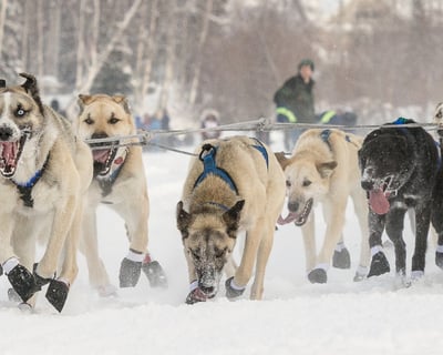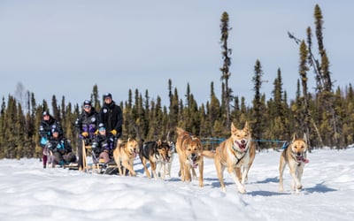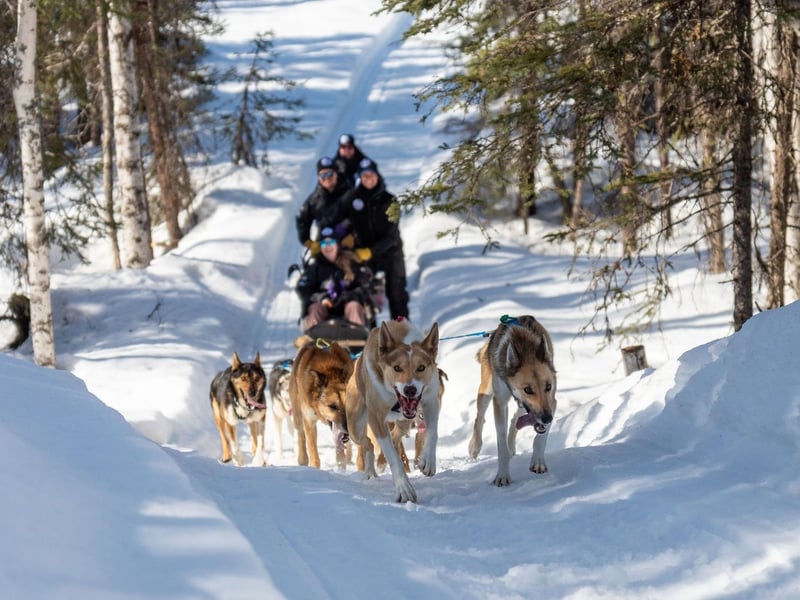 Meet Iditarod dogs and ride real racing trails on a 1.5-hour winter mushing tour