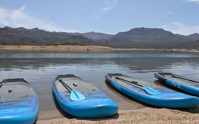 Launch from SB Cove at Bartlett Lake with a kayak or paddleboard ready for you. Explore calm waters surrounded by the Tonto National Forest and Mazatzal Mountains on a self-guided paddle.