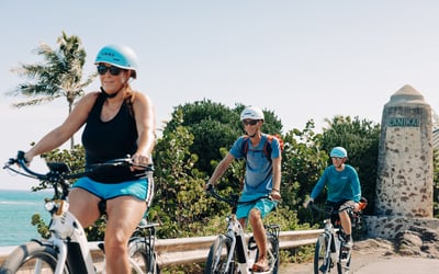 Ages 16+ per e-bike regulations. Guides will show you how to operate the e-bikes and confirm you are comfortable before departure. This is a self-guided tour; the hike and snorkeling are optional. Please include each participant’s snorkel gear size in the booking notes: Adult SM/MD, Adult LG/XL, or Kids (ages 5–9).