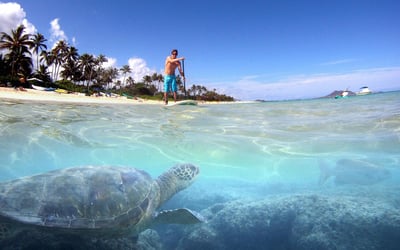 Glide across Kailua’s protected waters on a self-guided stand-up paddle adventure. Practice in the calm Kaʻelepulu Stream before exploring sandy beaches and offshore islands at your own pace.