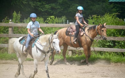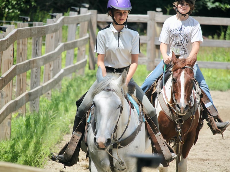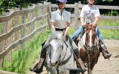 Take a semi-private riding lesson with a 1:2 instructor-to-student ratio. Lessons run year-round in indoor or outdoor arenas, suitable for all levels and ages 6+.