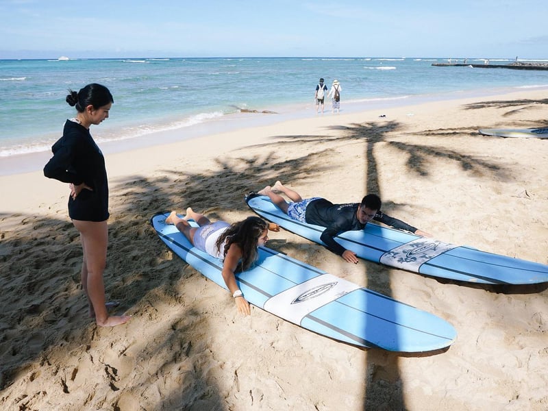 Gone Surfing's instructors consistently deliver exceptional lessons that turn nervous first-timers into confident wave-riders. Owen, Trevor, James, and Lindsay get frequent shoutouts for being patient, knowledgeable, and genuinely invested in getting students up on their boards. The team takes beginners to less crowded spots away from the main Waikiki chaos, which means more waves and better learning conditions. Several reviewers mention the thorough beach practice before heading out, and instructors stay attentive throughout the session, helping exhausted paddlers back to shore when needed. The photography add-on seems to be a popular choice that people appreciate having as proof of their accomplishments. Multiple reviewers emphasize that even complete beginners managed to catch waves and stand up during their first lesson, with one local resident overcoming a lifelong fear of surfing thanks to owner Jojo's supportive approach. The vibe is encouraging without being pushy, and instructors share the stoke with genuine enthusiasm when students succeed. It's worth noting the paddle out can be long, but reviewers consistently say the quality waves make it worthwhile.