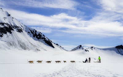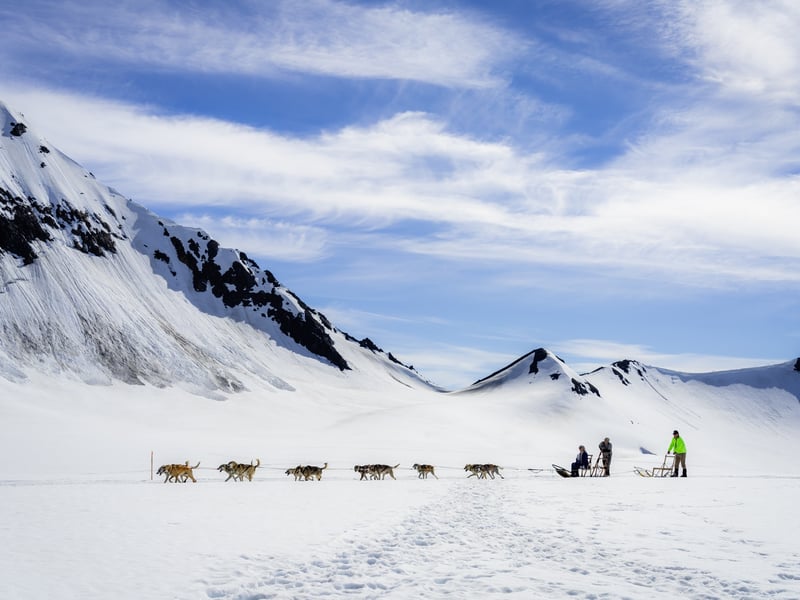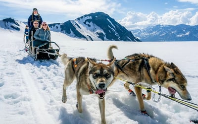 Fly above Kenai Fjords National Park, then land on a snow-covered glacier for an hour of dogsledding with an Iditarod team. Continue to a second scenic landing by an iceberg-filled lagoon or glacial ice wall.