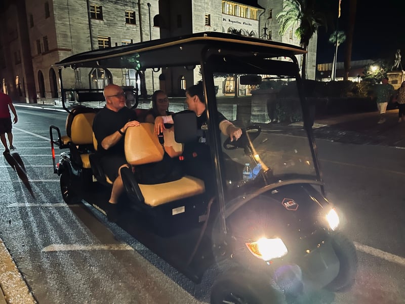 Discover the haunted history of St. Augustine as you ride through its storied streets. Enjoy chilling tales and see infamous sites from the comfort of an open-air electric vehicle.