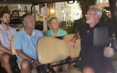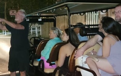 Experience ghostly tales and true crime mysteries on an electric tour vehicle.