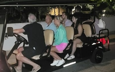 A: Mostly outdoors, moving through historic streets in an open-air vehicle.