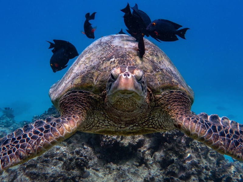 A: You may encounter reef fish, eels, turtles, rays, octopuses, and sometimes sharks.