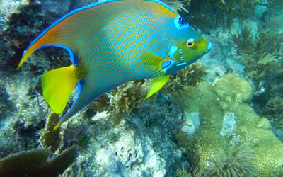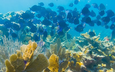 Spend 2.5 hours snorkeling a shallow coral reef inside the National Marine Sanctuary near Key Largo. Your captain selects the best reef for the day, with reefs averaging 6–8 ft.