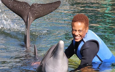 Step into waist-deep water for an intimate encounter with playful dolphins at Dolphins Plus. Meet these curious marine mammals up close while they choose the interactions that make every session unique.