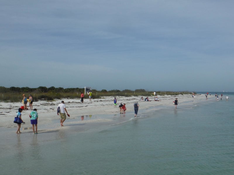 Cruise from Fort De Soto to Shell Key on a narrated ferry with covered seating and a clean restroom