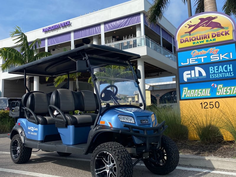 Explore Siesta Key at your own pace with a street-legal golf cart rental.