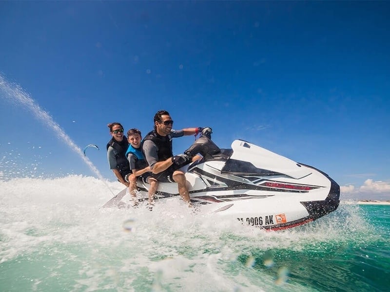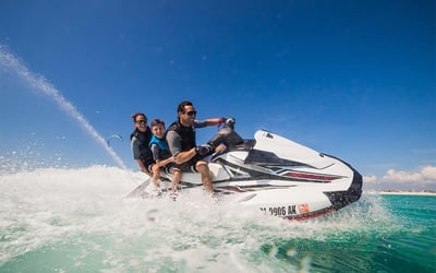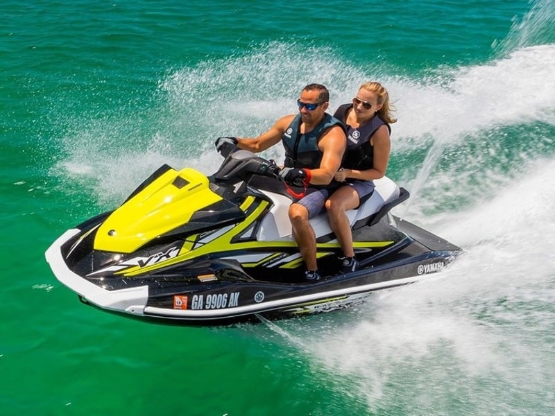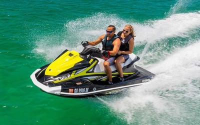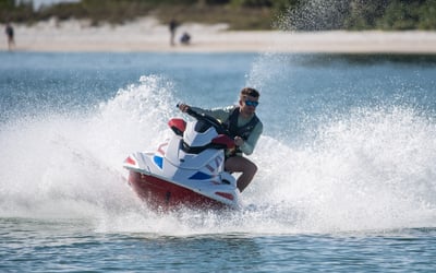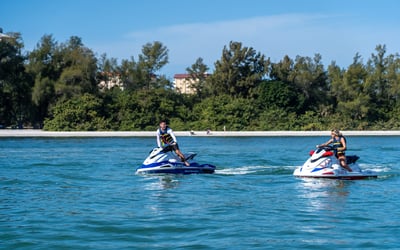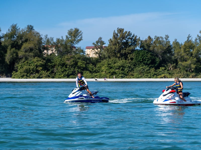 Feel the thrill of piloting a Yamaha VX110 Deluxe jet ski across the open waters of Siesta Key.