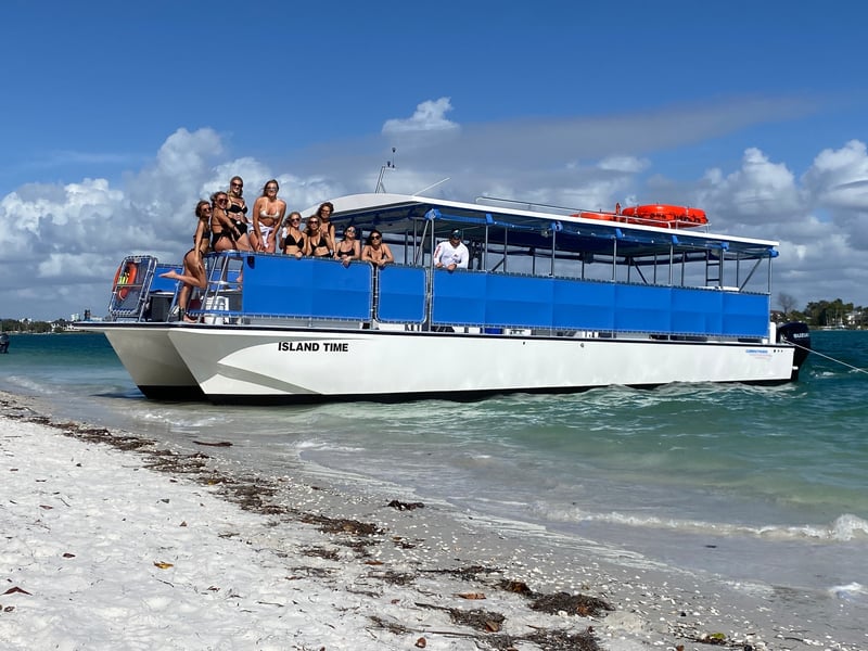 Design your own day on the water around Siesta Key aboard a private boat. Enjoy shaded seating while a professional captain guides you to sandbars, islands, and waterfront landmarks.