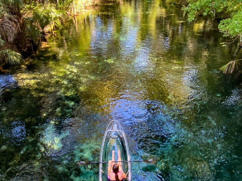 Paddle crystal-clear Silver Springs in a transparent kayak for close wildlife viewing.
