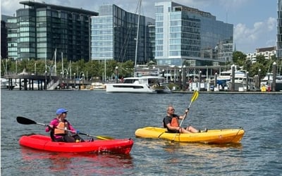 Paddle the calm waters of the Washington Channel from The Wharf. Single sit-on-top kayaks suit beginners and experienced paddlers.