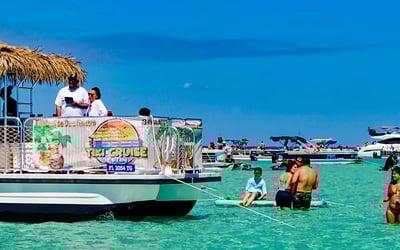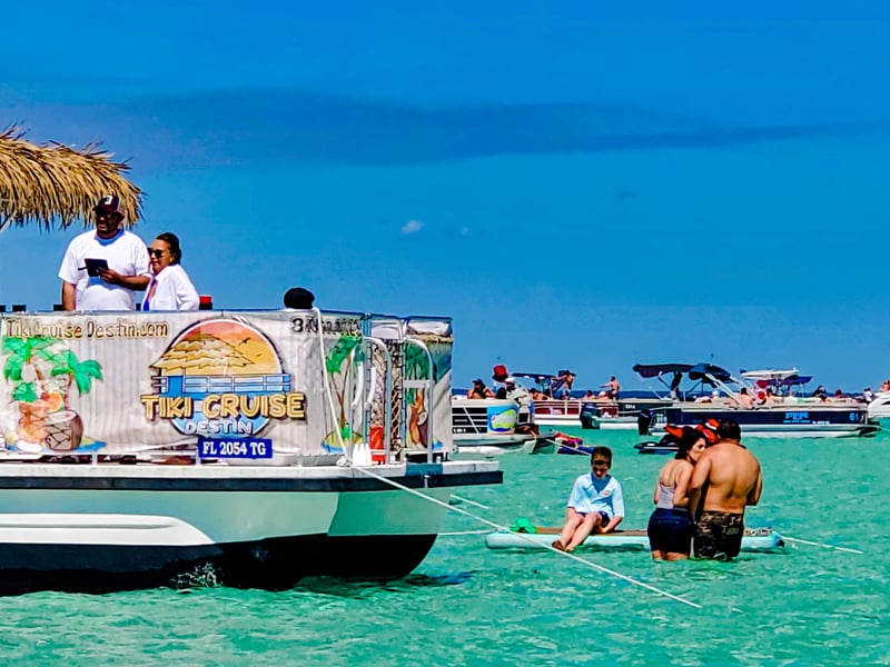 Set sail on a private Tiki Boat cruise to Crab Island in Destin, FL. Relax with friends or family and enjoy water activities and scenic views.