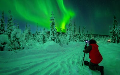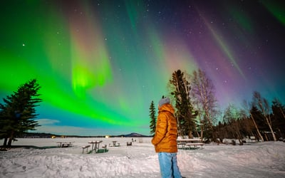 Chase the Northern Lights in comfort on a guided outing focused on viewing and photography. Ride in a heated Sprinter and relax at a cozy mobile lodge with snacks, drinks, and photo support