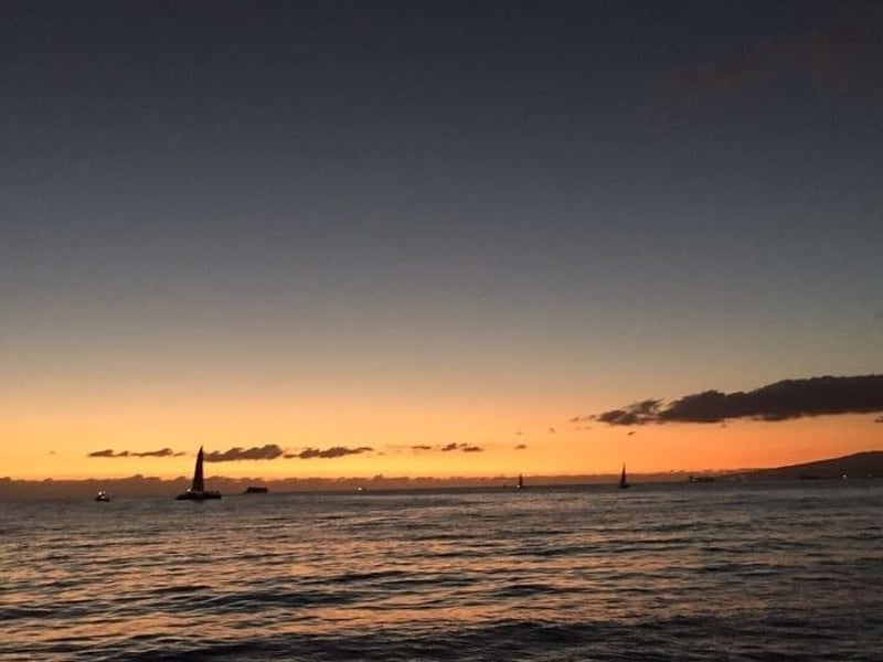 Watch a gorgeous Hawaiian sunset from the deck of a comfortable catamaran and see Waikiki’s lights sparkle across the Pacific.