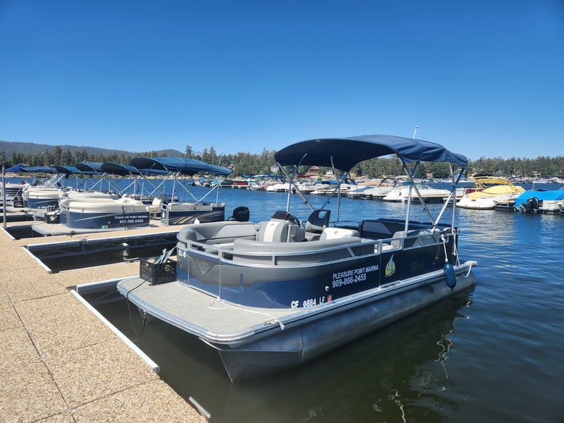 Rent a comfortable pontoon for easy cruising with up to 8 guests on Big Bear Lake