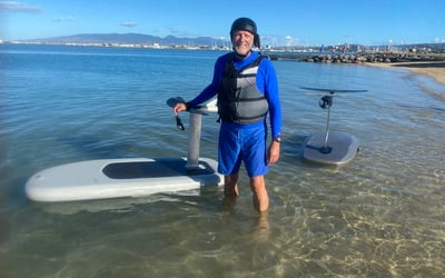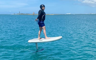Learn to ride an eFoil with coaching, ground school, and three water runs