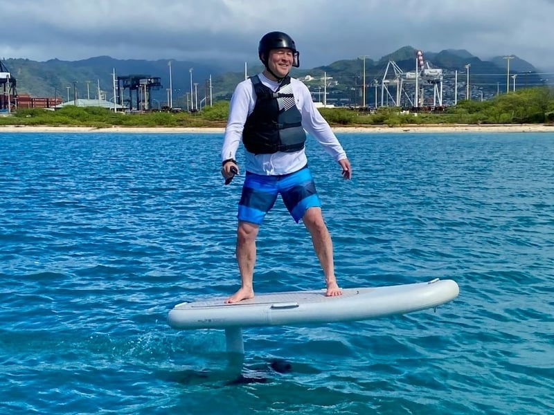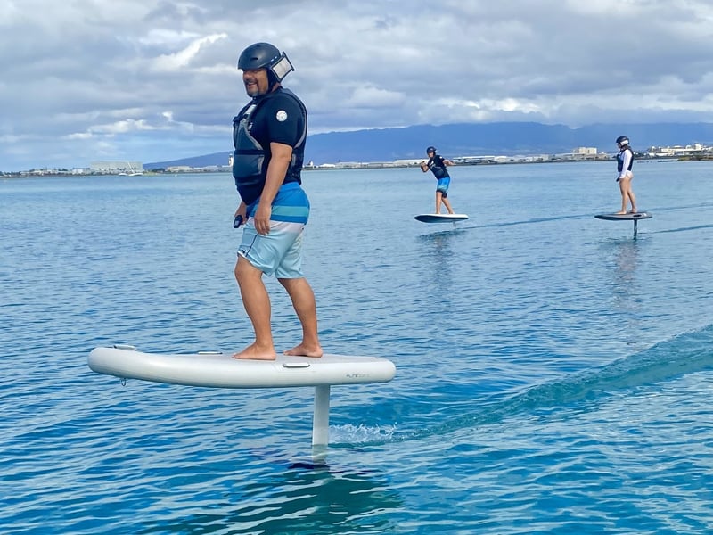 Ben (and sometimes Dan or "the Bens") consistently gets rave reviews for making e-foiling incredibly accessible to complete beginners. Most groups report getting up and riding within 10-30 minutes, which is impressive considering how intimidating the sport can initially seem. The instruction style strikes a great balance between thorough safety prep and giving riders freedom to find their rhythm once they've got the basics down. Several reviewers specifically mention how patient and reassuring the instructors are, which seems especially valuable for nervous first-timers. The location itself is a major advantage, operating in a calm, protected cove that's perfect for learning. People describe it as easier than traditional surfing and genuinely fun rather than just a novelty activity. The quality equipment and professional approach create a safe learning environment, while the positive, laid-back coaching style keeps things enjoyable throughout. Return customers and groups consistently mention this as a highlight of their Hawaii trip, with many already planning their next session before they've even left the water.