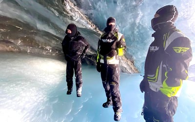 Ride glacier country by snowmobile with expert guides, full gear, and a light lunch