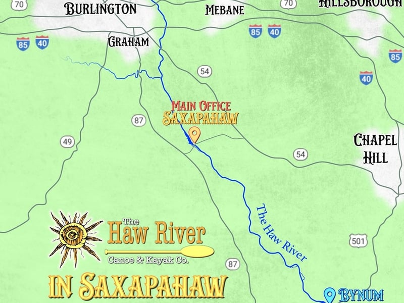 Yes. The Swepsonville River Park accesses are a short paddle upstream, and Graham Paddle Access and Red Slide Park add a few easy miles. With 3–5 ft on the Haw River gage, you can paddle from Glencoe's Great Bend Park.