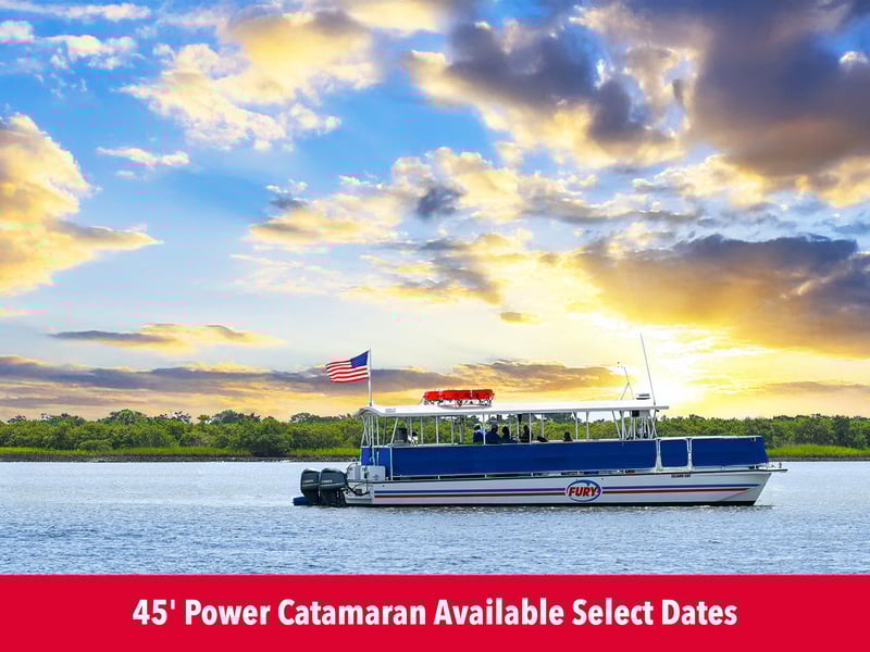 Complete your waiver and check in 30 minutes early at the vessel. Adults 21+ with valid photo ID may consume alcohol. A 45' power catamaran operates Jan 13–Mar 1, 2026; parking at Beaches Marina is limited, so allow extra time.