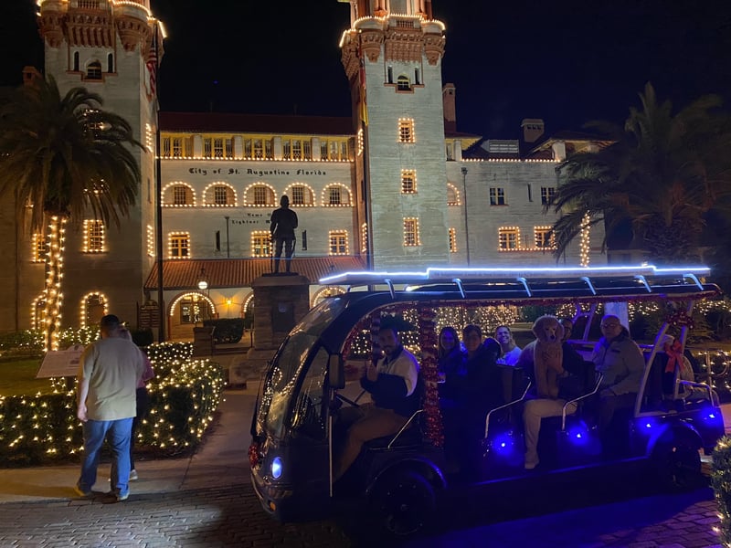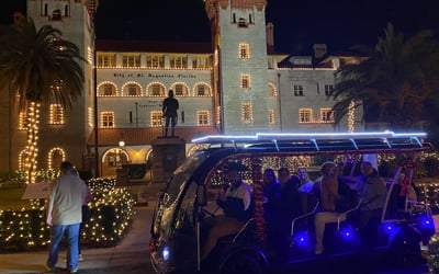 Ride an open-air electric cart through St. Augustine's Nights of Lights. Enjoy holiday music as you glide past millions of sparkling displays.