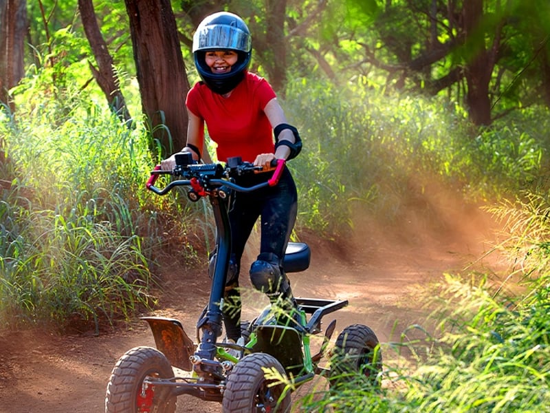 Ride stand-up ATVs on rugged trails with optional Waikiki transport for a hassle-free off-road thrill.