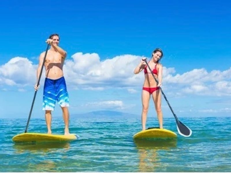 Book a self-guided stand up paddle adventure and enjoy the freedom to explore the water at your own pace. The inflatable paddle board is ideal for a variety of water activities.