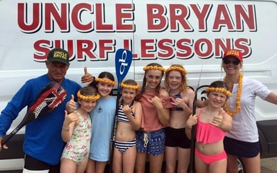 Uncle Bryan's surf school has built a solid reputation with instructors who genuinely know their stuff. Names like James, Fernando, Mitch, and Nikoa come up repeatedly, with students praising their patience, clear teaching style, and ability to make beginners feel confident in the water. The two-hour lesson format (longer than many competitors) gives you real time to practice and progress. Parents especially love how the instructors connect with kids, and the communication before your lesson is consistently described as helpful and accommodating. Most students walk away stoked, catching waves and already planning their next session. The instructors break down surfing into simple steps on the beach before heading out, then provide hands-on support in the water. One reviewer noted that larger group classes can feel less personalized, with minimal individual feedback once you're out surfing, and the photographer may not capture everyone's best moments. If you want more attention, private lessons seem to be the way to go. The overwhelming majority of visitors had fantastic experiences though, with many saying they'd return or specifically requesting the same instructor for future sessions.