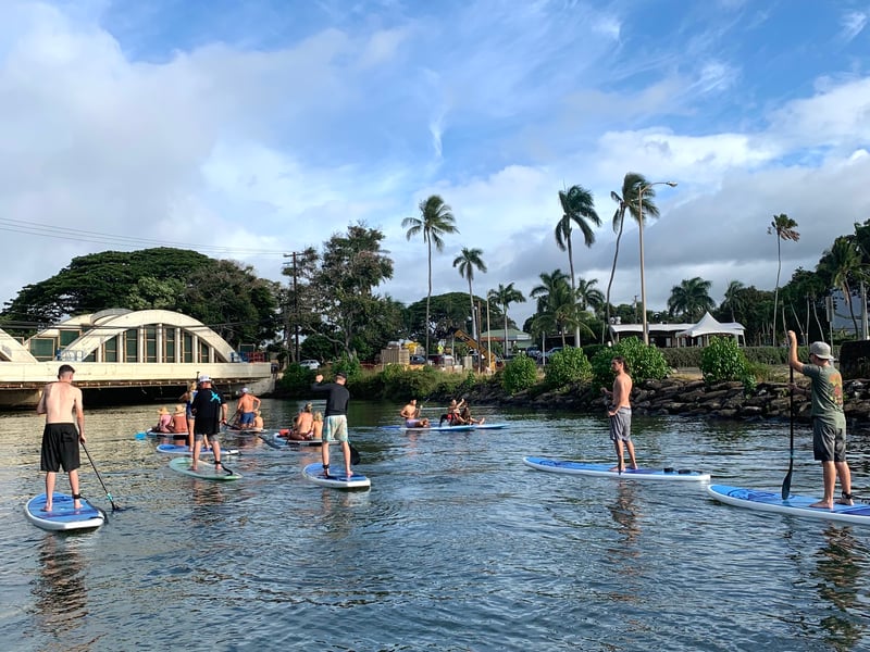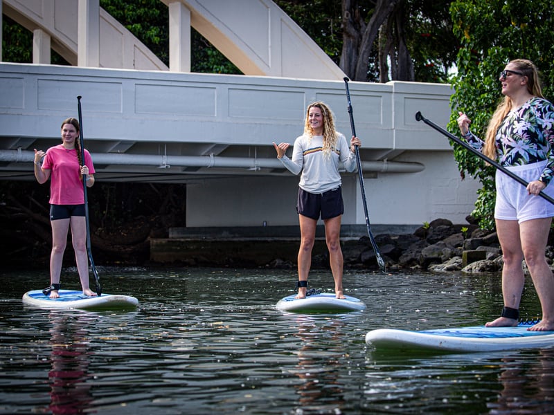 Rainbow Watersports has clearly figured out the formula for a memorable North Shore adventure. The operation runs paddle board and kayak tours along the calm Anahulu River near Rainbow Bridge in Haleiwa, making it an ideal spot for first-timers and families with kids. What keeps people raving is the friendly, low-key vibe from start to finish. Riley and Megan get mentioned by name for being genuinely helpful guides who take photos, give clear instructions, and make everyone feel comfortable on the water. The communication is spot-on too, with texts confirming details and quick responses to questions. They'll meet you right at the beach with equipment, and pickup is just as seamless. The real highlight seems to be spotting sea turtles paddling up the river, especially during the glow paddle sessions at sunset and into the evening. Multiple groups talk about seeing these turtles migrating between the ocean and river, which apparently happens daily as they head back to their sleeping spots. The calm, wave-free water makes this genuinely beginner-friendly, and families appreciate how safe and relaxed the whole experience feels. One traveler did lose a GoPro in the murky water, so secure your gear well. But overall, this consistently ranks as one of people's favorite activities during their Oahu trips, whether it's a casual two-hour rental or a guided tour. The fact that large groups of ten can be accommodated just as smoothly as couples speaks to how well-organized this outfit is.