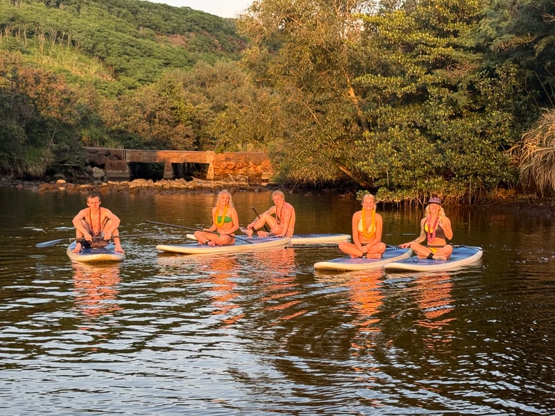 Rainbow Watersports has clearly figured out the formula for a memorable North Shore adventure. The operation runs paddle board and kayak tours along the calm Anahulu River near Rainbow Bridge in Haleiwa, making it an ideal spot for first-timers and families with kids. What keeps people raving is the friendly, low-key vibe from start to finish. Riley and Megan get mentioned by name for being genuinely helpful guides who take photos, give clear instructions, and make everyone feel comfortable on the water. The communication is spot-on too, with texts confirming details and quick responses to questions. They'll meet you right at the beach with equipment, and pickup is just as seamless. The real highlight seems to be spotting sea turtles paddling up the river, especially during the glow paddle sessions at sunset and into the evening. Multiple groups talk about seeing these turtles migrating between the ocean and river, which apparently happens daily as they head back to their sleeping spots. The calm, wave-free water makes this genuinely beginner-friendly, and families appreciate how safe and relaxed the whole experience feels. One traveler did lose a GoPro in the murky water, so secure your gear well. But overall, this consistently ranks as one of people's favorite activities during their Oahu trips, whether it's a casual two-hour rental or a guided tour. The fact that large groups of ten can be accommodated just as smoothly as couples speaks to how well-organized this outfit is.