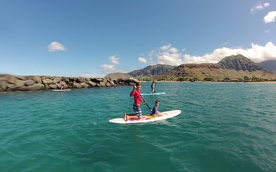 Learn the fundamentals of stand up paddleboarding in the calm, warm waters of Pokai Bay. Glide across sheltered waves while spotting sea turtles, dolphins and panoramic views of Oahu's west coast.
