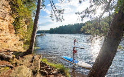 Paddle Lake Delton on a stand-up paddleboard and follow Dell Creek toward the Mirror Lake Dam. Pick a rental length from 1 hour to 6 days.