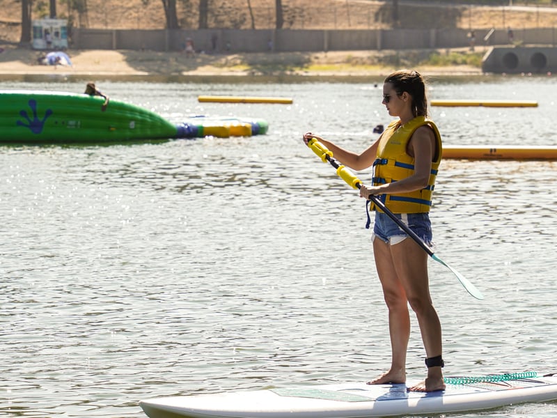 Explore Lake Gregory at your own pace with a paddleboard rental for up to two hours.