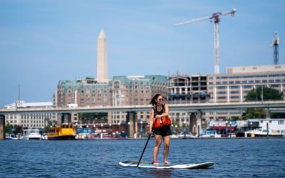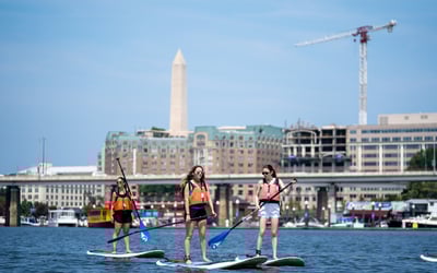 Paddle the calm Washington Channel from The Wharf with board, paddle, and PFD included
