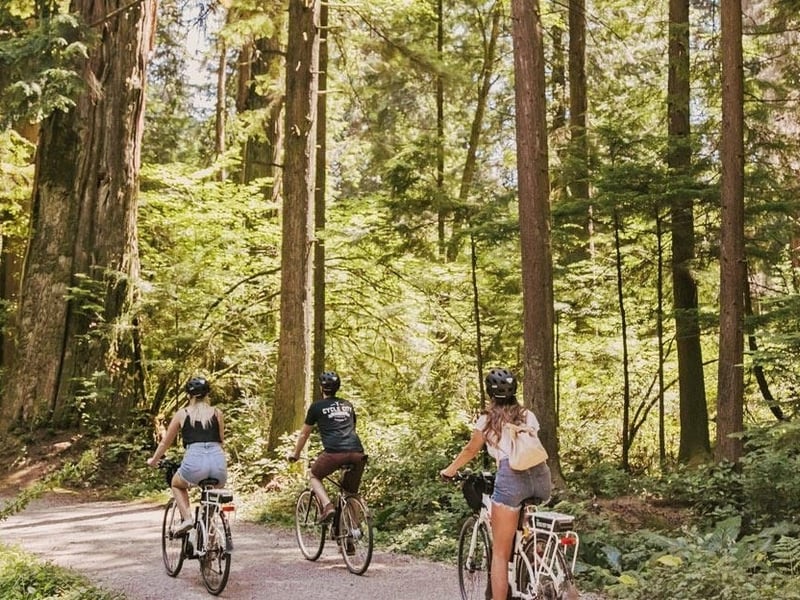 Ride Stanley Park’s trails and seawall as guides share rainforest ecology and First Nations history.