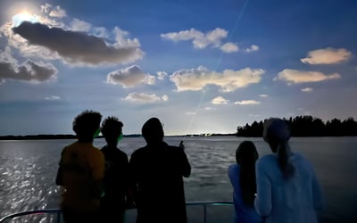 Embark on a two-hour evening cruise along Florida's Indian River Lagoon. Watch dolphins at sunset before an onboard astronomer guides your journey through the night sky.