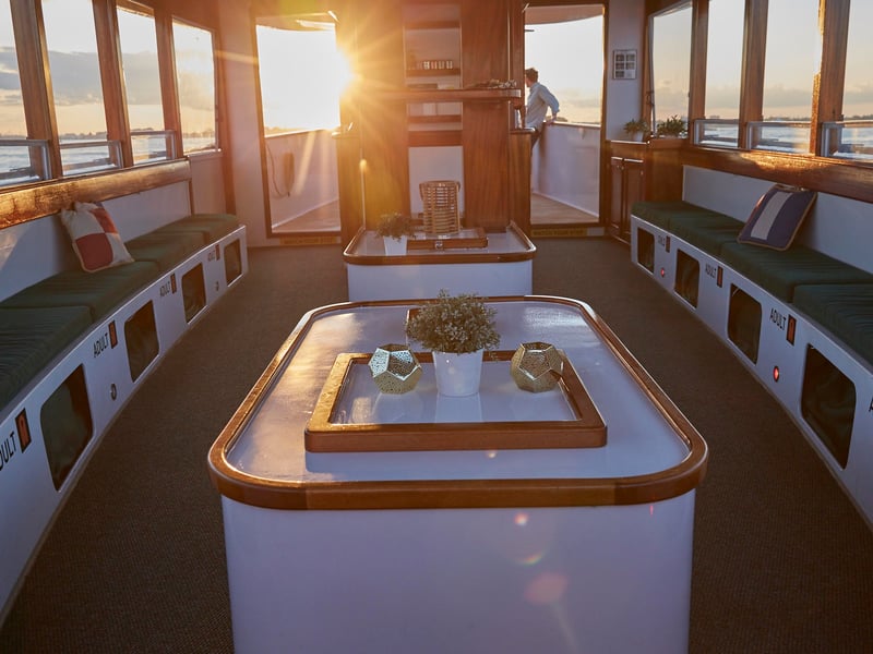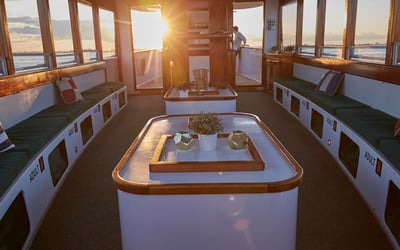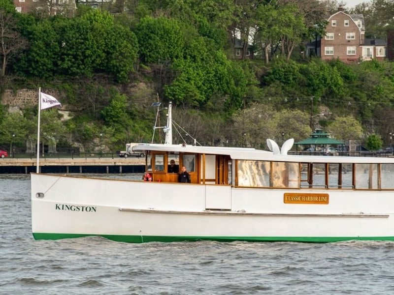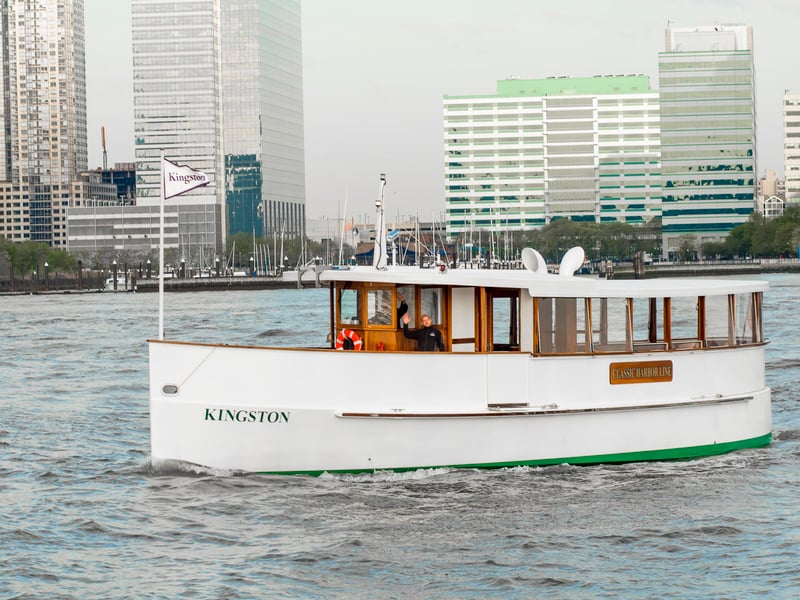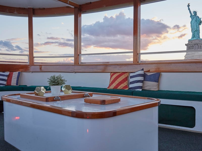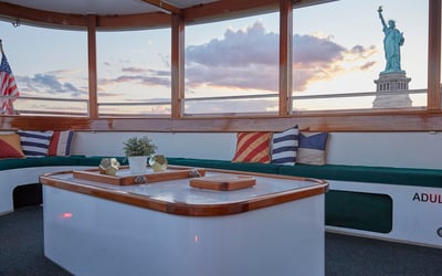 Cruise New York Harbor aboard the intimate classic yacht Kingston. Relax on cushioned, covered seating with large windows as you take in skyline views and landmarks, plus enjoy one complimentary drink.