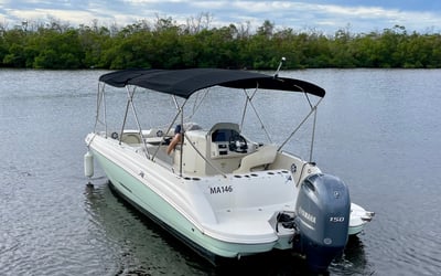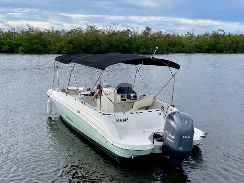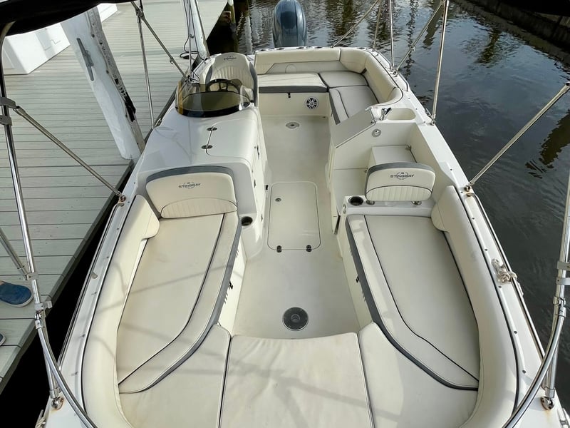Enjoy a comfortable day on the water with a Stingray deck boat, perfect for groups seeking adventure and relaxation. Explore scenic islands and waterways at your own pace.