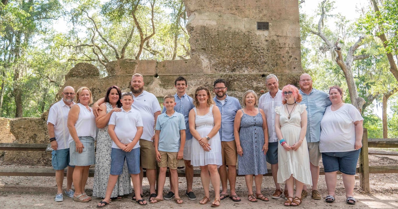 Professional portraits in a scenic Lowcountry setting with historic ruins
