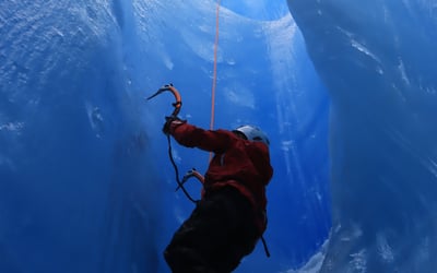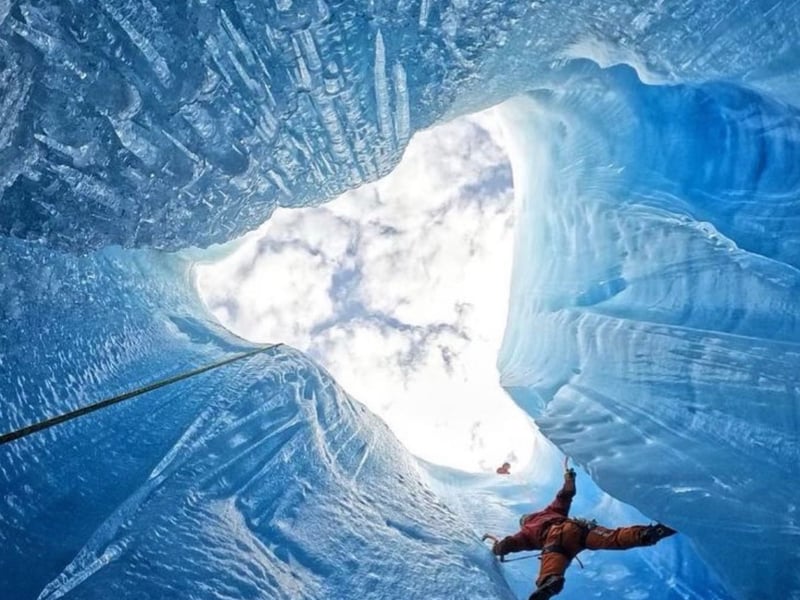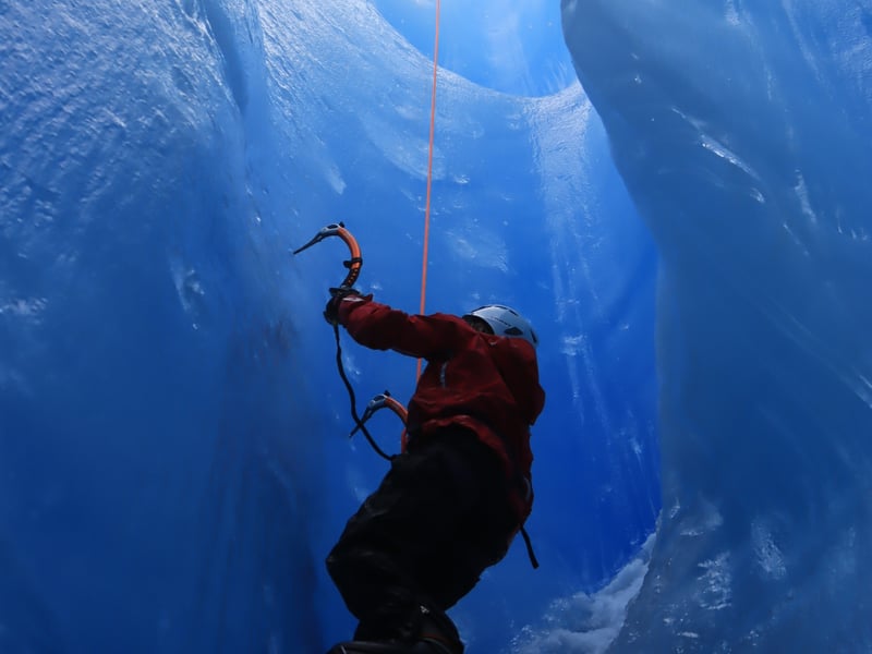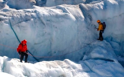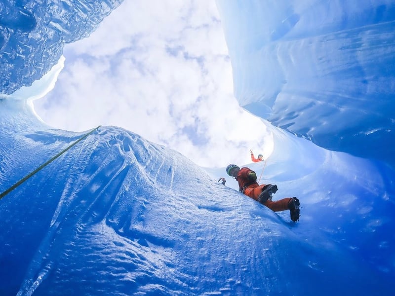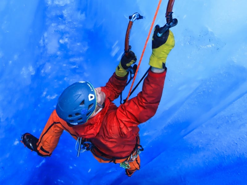 Fly by helicopter to Knik Glacier for a hands-on ice climbing session. Learn essential techniques and tackle multiple top-rope climbs with expert guides.